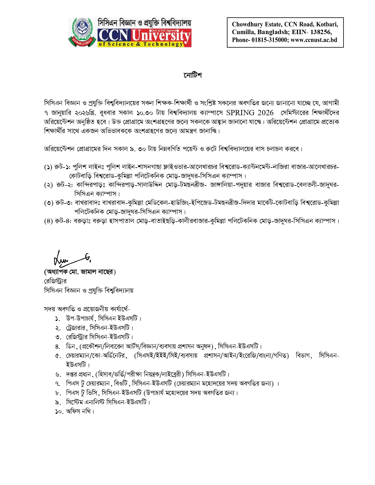 CCN-UST Admission ongoing on Spring-2026 (January to June)