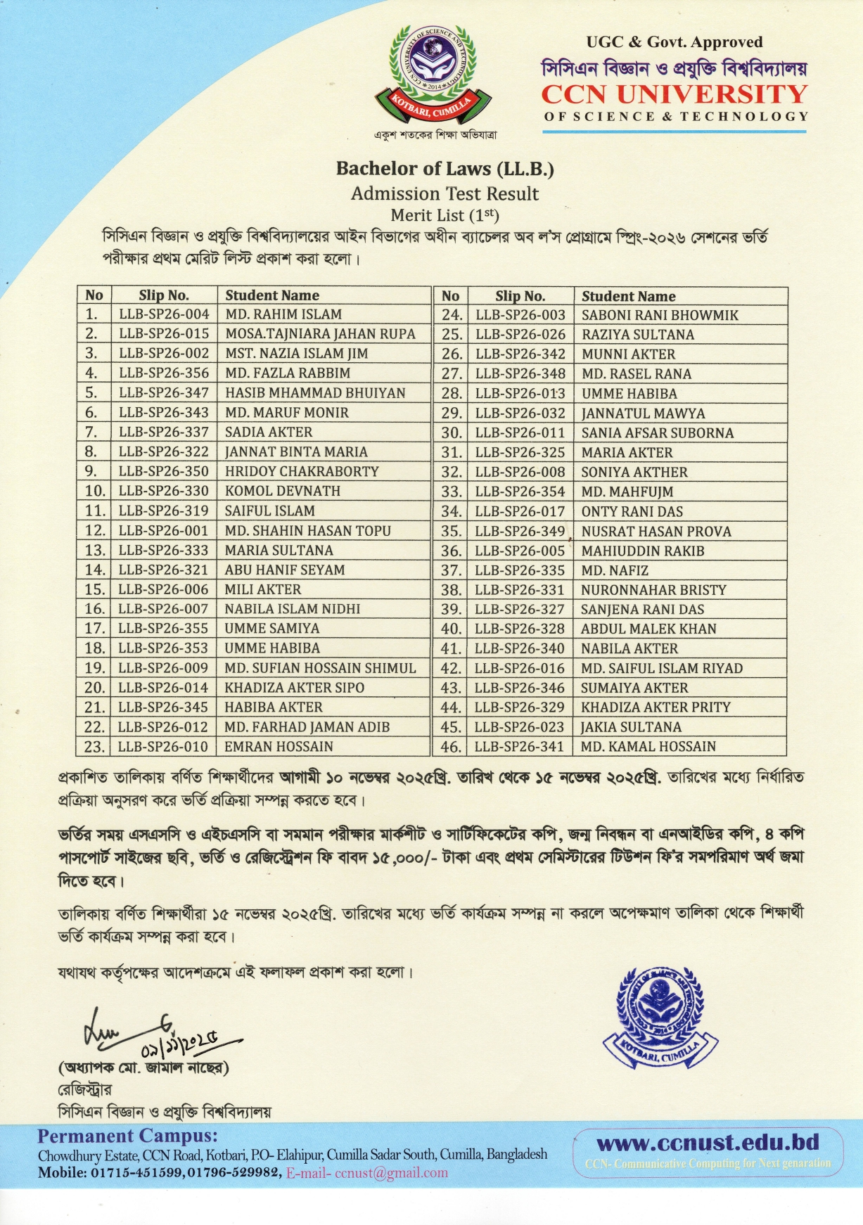 CCN-UST Admission ongoing on Spring-2026 (January to June)