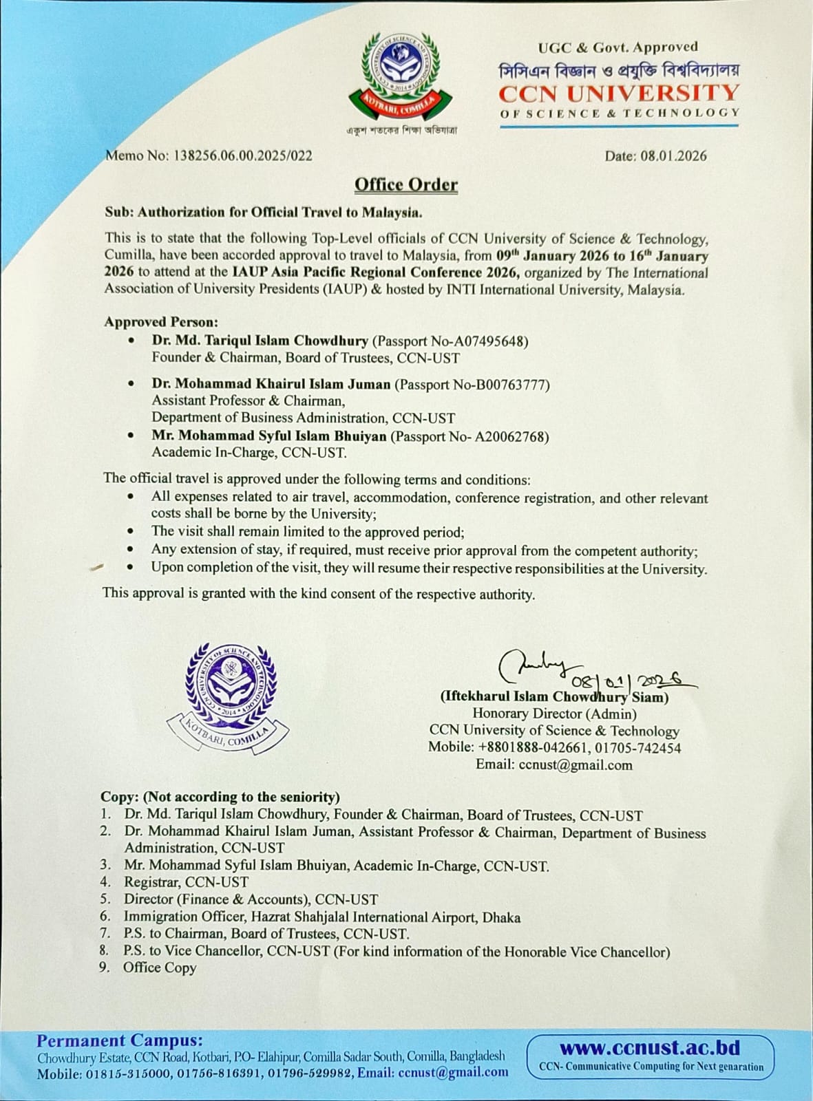 CCN-UST Admission ongoing on Spring-2026 (January to June)